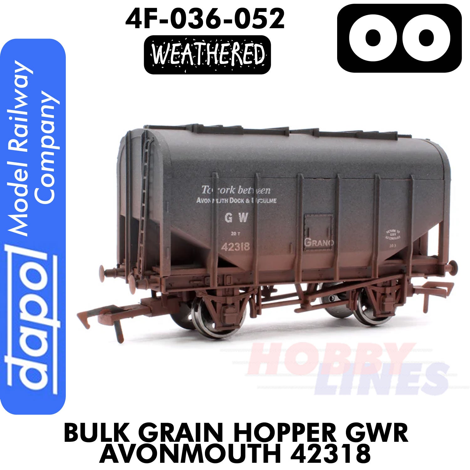Bulk Grain Hopper GWR Avonmouth 42318 - Weathered | Dapol | 4F-036-052 is backordered and will ship as soon as it is back in stock.